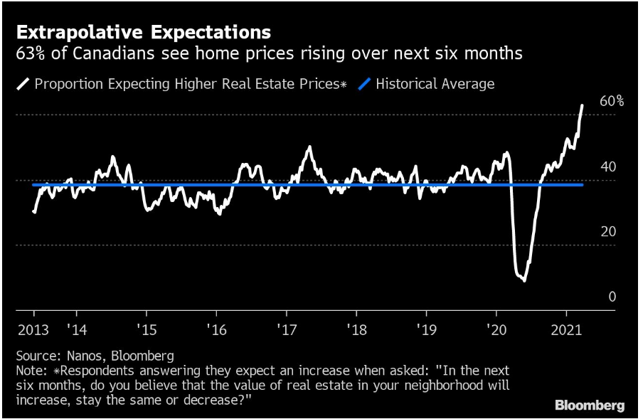 The Bank remains concerned about extrapolative expectations leading to overheated price increases and speculative activity (see chart below). They welcome the proposed changes to the Guideline B-20 by the Office of the Superintendent of Financial Institutions to help reduce these risks.
