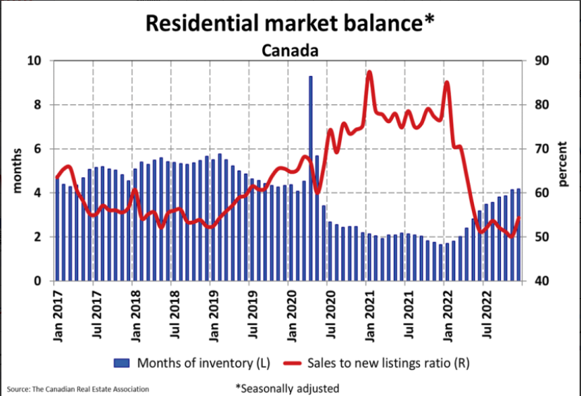 With new listings down by quite a bit more than sales on a month-over-month basis, the sales-to-new listings ratio tightened to 54.4% compared to 50.2% posted in November. The long-term average for this measure is 55.1%.There were 4.2 months of inventory on a national basis at the end of December 2022. This is close to where this measure was in the months leading up to the initial COVID-19 lockdowns and still nearly a full month below its long-term average.