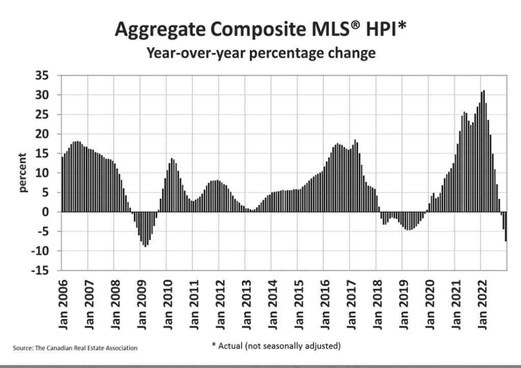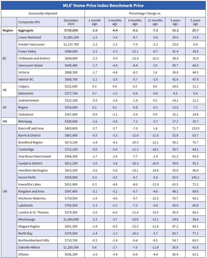 The non-seasonally adjusted Aggregate Composite MLS® HPI was 7.5% below its December 2021 reading.