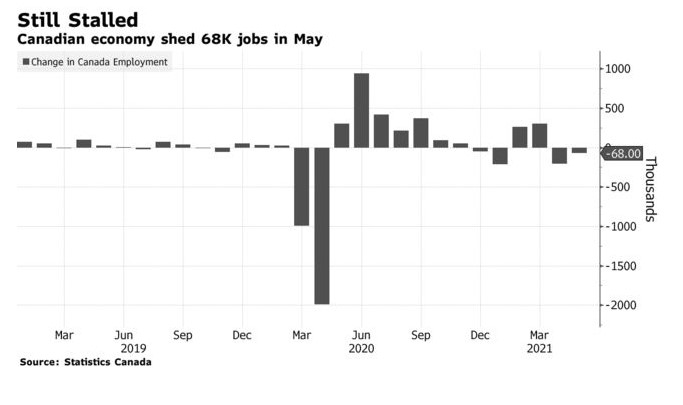 The Canadian jobs report coincided with the release of U.S. payroll numbers, which increased by 559,000 last month — short of an expected 675,000–but well above the surprisingly weak job growth in April.
