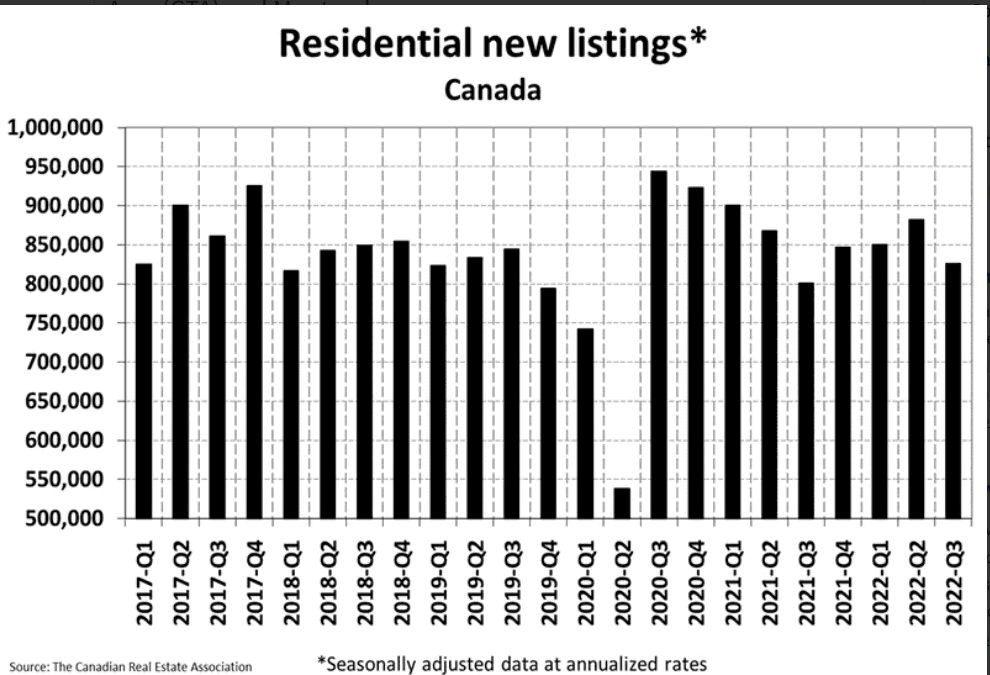 Unusually, new listings would be so listless during a housing slowdown. However, the CREA data only go back 42 years, when interest rates trended sharply downward. Sellers today typically have mortgages at far lower than current rates, which no doubt dampens their enthusiasm to sell. Distressed sellers apparently listed their homes earlier this cycle, with the rest remaining on the sidelines for now. That could change if interest rates rise substantially further, although the incentives to stay in place continue high.