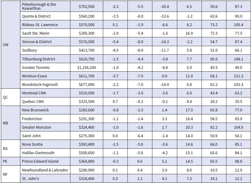 On the East Coast, price softness that had been confined to the Halifax-Dartmouth area appears to now be showing up in parts of New Brunswick and Newfoundland and Labrador, while prices in Prince Edward Island have flattened out in recent months but have not yet moved any lower.