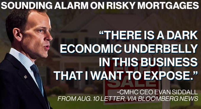Yesterday, Evan Siddall, the CEO at the Canada Mortgage and Housing Corp, published an August 10 letter to the financial industry imploring lenders to ‘reconsider’ offering mortgages to highly leveraged households, saying excessive borrowing will worsen the pain of the coming economic adjustment. Evan Siddall said the Crown corporation had lost market share due to restrictions it imposed on high-risk borrowers earlier this summer. Private mortgage insurers have picked up that business, weakening CMHC’s position and threatening the agency’s ability to protect the mortgage market in the event of a crisis, he said.