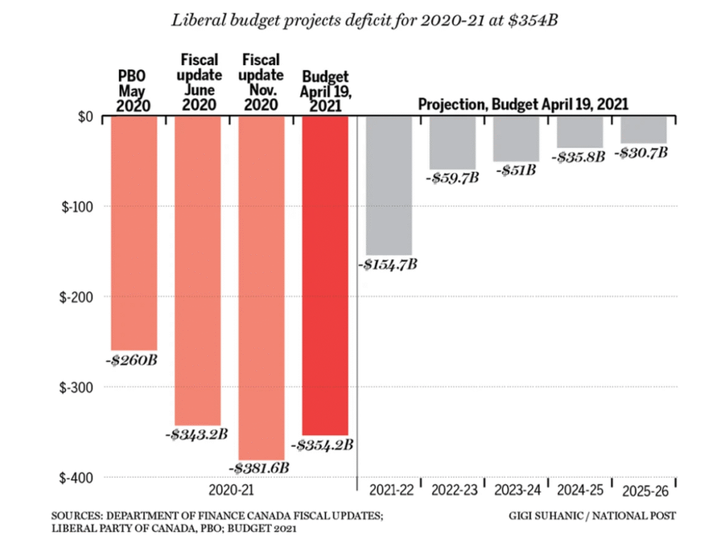 Canada’s net debt is now over $1 trillion for the first time, after a $354 billion deficit for the pandemic year just over. It is expected to keep climbing with deficits of $155 billion this year and $60 billion in 2022-23.