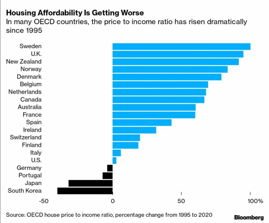 It is noteworthy that while Canada suffers one of the most acute housing shortages, housing affordability is getting worse in many OECD countries (see chart below).