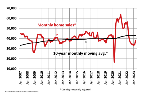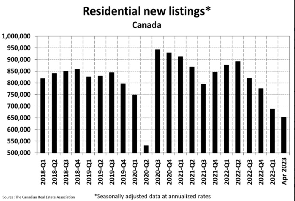 The Canadian Real Estate Association says home sales in April surged 11.3% month-over-month. The Spring rebound was on the heels of smaller back-to-back gains in the prior two months. Now that the Bank of Canada paused interest rate hikes and home prices in most regions have softened, homebuyers are scrambling for the minimal available housing supply.