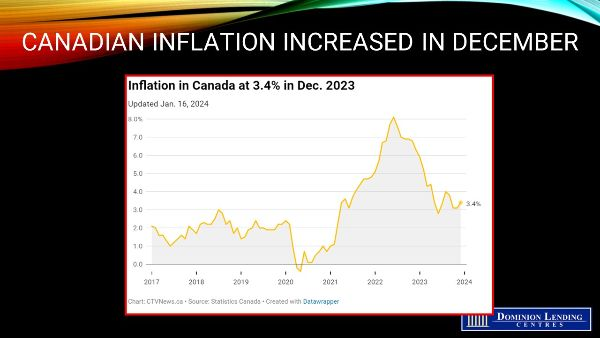 Canada’s headline inflation number for December ’23 moved up three bps to 3.4%, as expected, as gasoline prices didn’t fall as fast as a year ago. These so-called base effects were also evident in the earlier US inflation data for the same month.