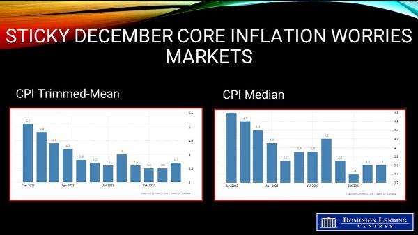 Another important indicator, a three-month moving average of underlying price pressures, rose to an annualized pace of 3.63% in December from 2.94% in November, according to Bloomberg calculations. The Bank of Canada follows this metric closely because it reveals shorter-term inflation trends.